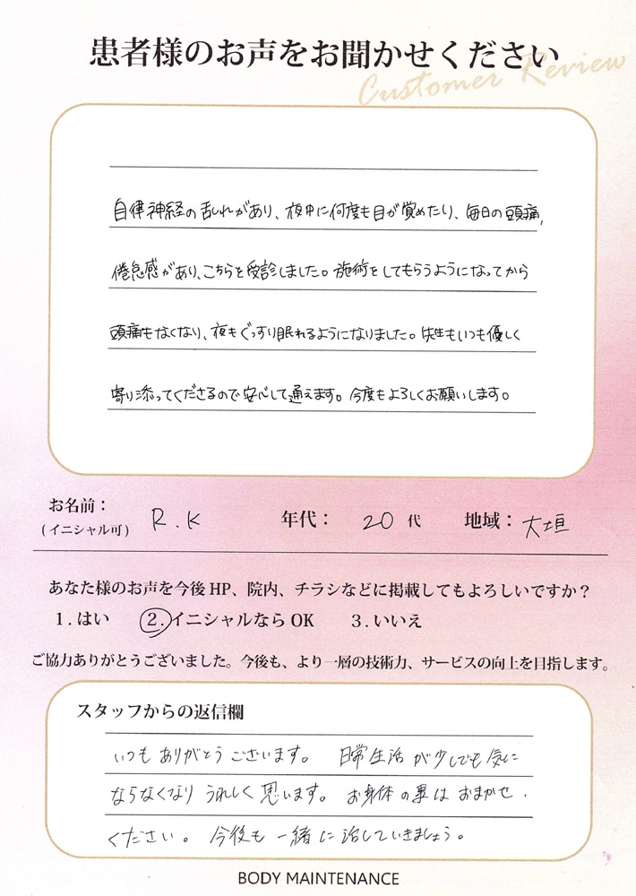 自律神経失調症への治療方法例|大垣市 ボディメンテナンス大垣整骨院・整体院